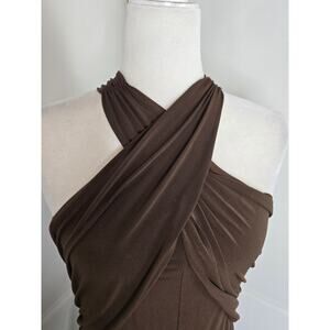 Spiegel EUC Vintage maxi high waist halter twist formal gown Small 6 dark brown