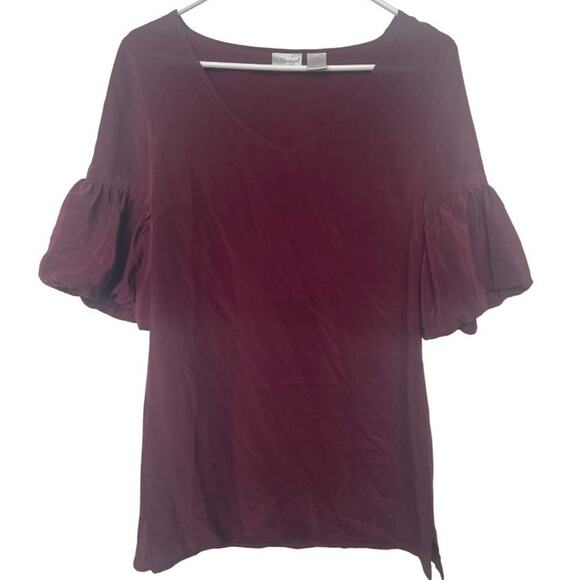 Spiegel Vintage silk burgundy puff sleeve tunic blouse semi sheer V-Neck Top Size 4