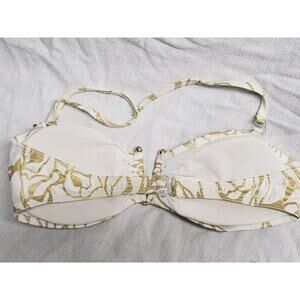 Spiegel Strapless / Halter Bikini 2 Piece Swimsuit Set with a Gold design all over. Excellent preloved condition.