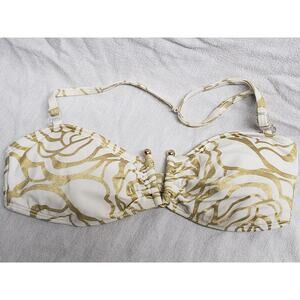 Spiegel White w. Gold Floral Design 2 Piece Strapless Bikini Swim Suit Set