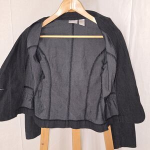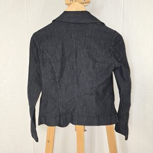 Spiegel women's blazer in dark gray size 2 with a 22" sleeve length and 16" pit to pit laying flat.