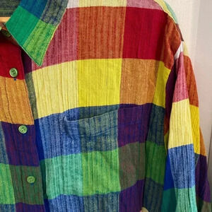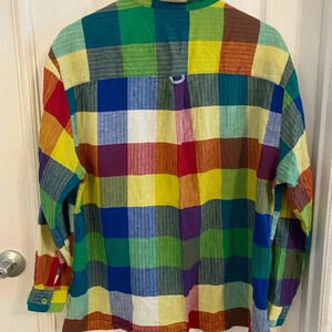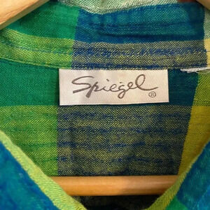 Spiegel Womens Plaid Button Down Linen Blend Shirt Long Sleeve Casual Size XL. This shirt is pre-owned. Good condition. No flaws. Size tag has been removed. See measurements. Measurements: 24 inch chest 14 inch waist 28 inch length 24.5 inch arm length