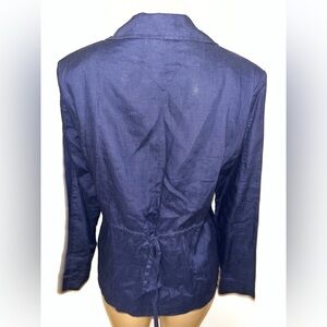 Elevate your wardrobe with this stylish navy blue linen blazer from Spiegel in size 14. The blazer exudes sophistication and elegance, perfect for any formal or casual occasion. The blazer features a beautiful blue color and is made of high-quality linen material, ensuring both comfort and durability.