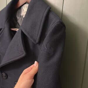 Spiewak Peacoat Double Breasted Wool Blend Size Small Navy Blue. Great condition