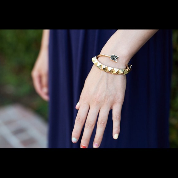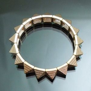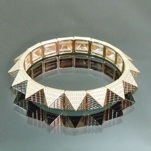 Brand new gold tone square textured pyramid studs elastic bangle. Material: metal with gold plated.