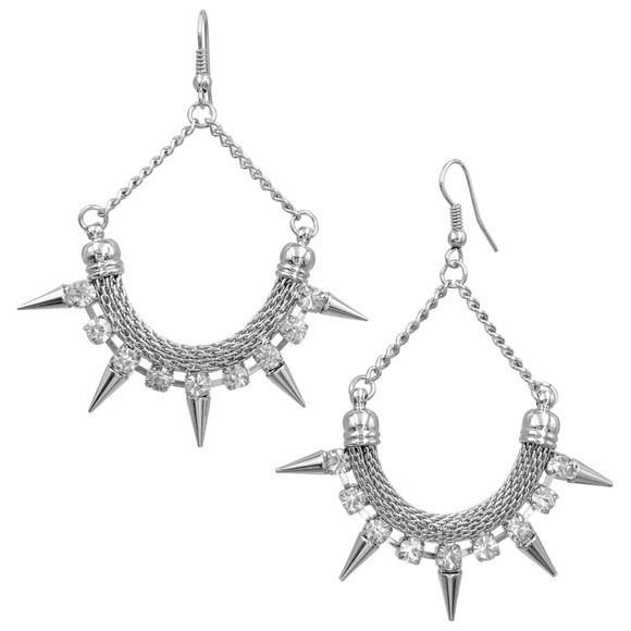 Spike Scoop Rhinestone Silver Dangle Earrings