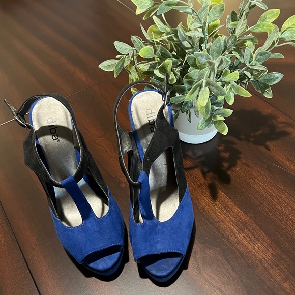 Beautiful black and royal blue suede heels 5” spike Great condition