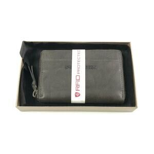 Spikes & Sparrow Gray Leather Avery Accordion Zip Wallet RFID Protected New