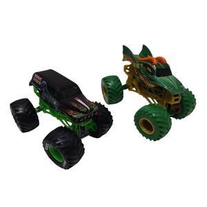 Lot of 2 Spin Master diecast Monster Jam trucks, Crazy Creatures series Gravedigger and Dragon. 1:64 Scale,