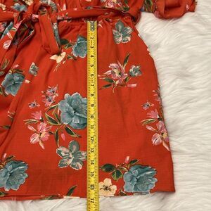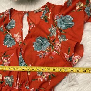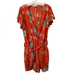 Spin USA Floral Red Orange Romper with Ruffle Sleeves Size 2XL