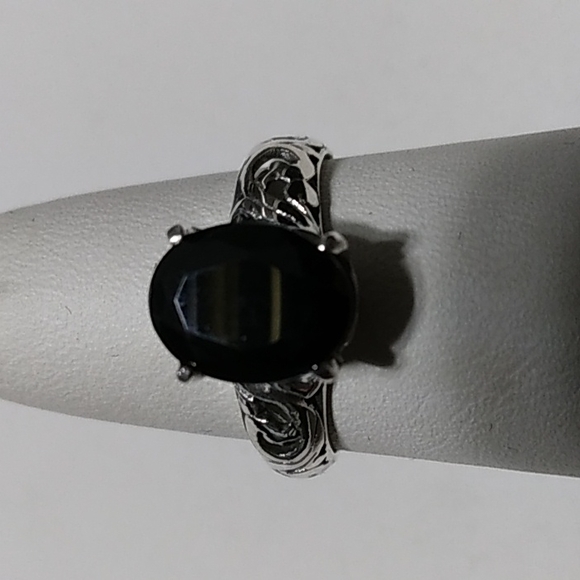 925 sterling silver fancy artisan crafted filigree gallery and shank design 2.30 ct natural genuine Thai black spinel solitaire style ring. New.