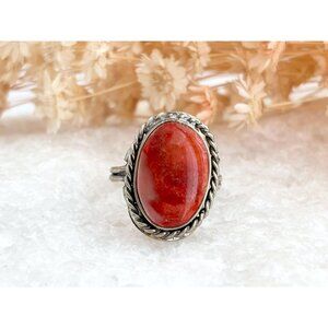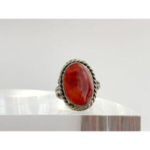 Spiney Oyster Stone Cabochon Silver Toned Adjustable Vintage Ring - sz 6.25