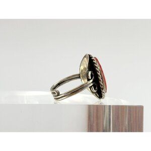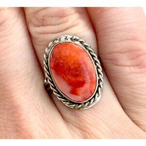 Silver toned spiney oyster stone adjustable shank ring. The shank is double lined. Stone is domed and is bezel set. Silver toned, may contain some silver but is not sterling.