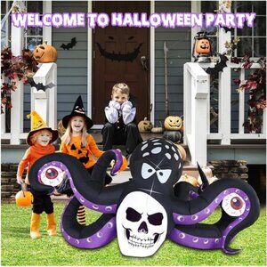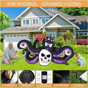 🧿【Size of Halloween Inflatables】: The width of inflatable halloween decorations is 7.5 FT, height is 4.3 FT, to halloween, nothing spells holiday like giant inflatable octopus, scary large Inflatable octopus is waving its 6 tentacles, add terror atmosphere to your yard at day, glowing eyeball and skull can bring better night viewing effects, during the day and even at night, which can attract neighbors, friends and guests. it will be the cutest and wonderful decoration in the entire community.