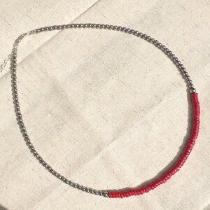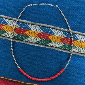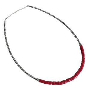 Bring warmth and individuality to your style with this handmade red magnesite Heishi and sterling silver pearl necklace.