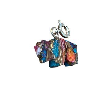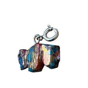 Spiny Oyster Turquoise Carved Buffalo Charm Pendant Sterling Silver Colorful