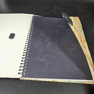 A functional and stylish notebook featuring lined and grid pages, a secure closure, and a vintage map cover design. Durable and versatile.