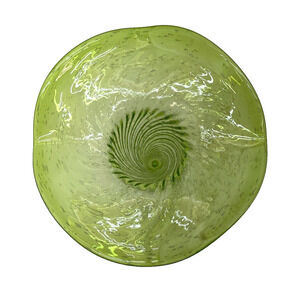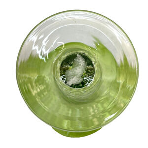 Spiral Ribbed Transparent Green Glass Vase with Circular Flat Base 10 1/2" Tall