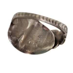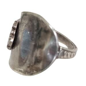 This stunning sterling silver spoon ring is a unique statement piece crafted from repurposed flatware, blending vintage charm with modern sustainability.