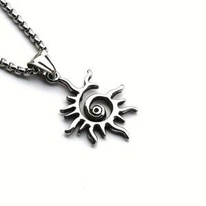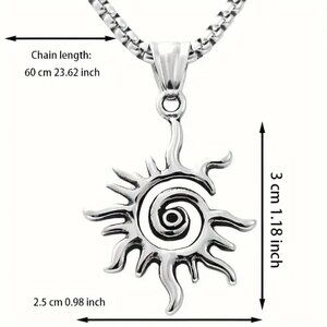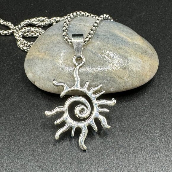Spiral Sun Silver Tone Pendant and Necklace #1375