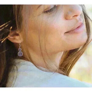 Earrings are about 9/16” x 15/16" on silver tone earwires, featuring spiral infinity charms, lightweight and comfortable