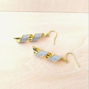 14k Yellow Gold over Sterling Silver, 3.20 grams. The metal shaped in a spiral pattern features a chequered pattern with sandblasting giving a sparkling touch. The fishhook closure on ends allows hassle-free wearing, and the exquisite design of these earrings gives a graceful look.