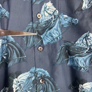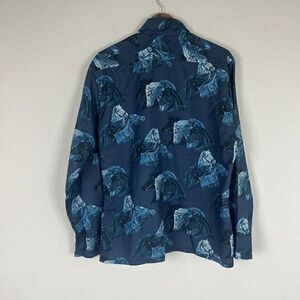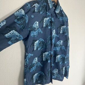 Spire California Vintage 70s Blue Western Horse Button Up Long Sleeve Large.