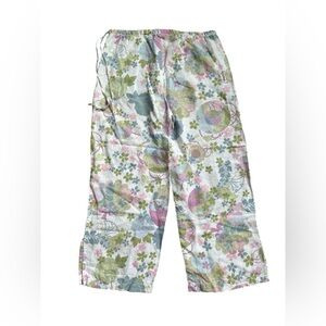 Spirit Activewear 100% linen cropped pants in pastel color floral design medium