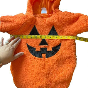 Your little one will look super cute and extra cozy in this baby bunting jack-o'-lantern costume! The faux fur material will keep them feeling warm while you make memories that will last a lifetime!