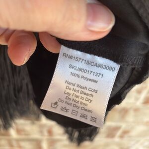 Chic black midi dress featuring black fringe. Perfect for special events.