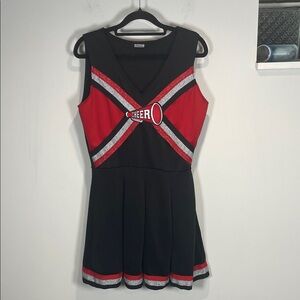 Chic mini dress with vibrant red and black design. Features bold cheer accents. Ideal for energetic events.