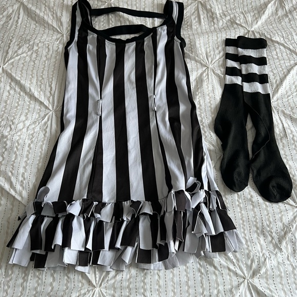 Stylish black and white referee costume by Spirit. Medium size. Made of 100% polyester.