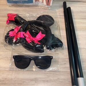 Includes mouse ear headband, bowtie choker, dark sunglasses, seeing cane and tail. Perfect for a playful look.