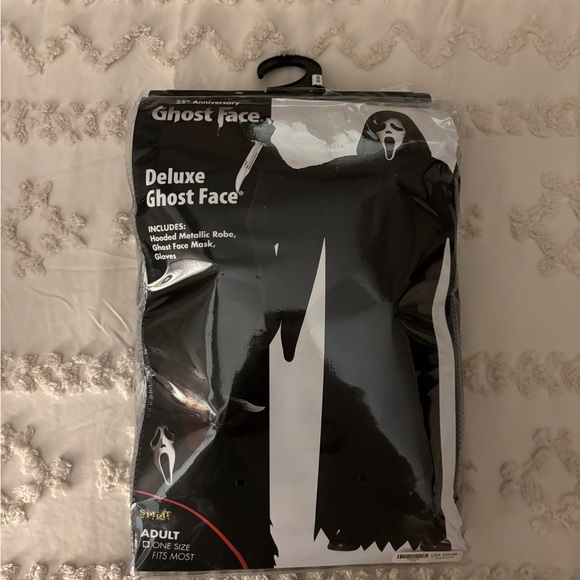 Deluxe Ghost Face costume by Spirit. Includes hooded robe, ghost face mask, and gloves. Perfect for Halloween.