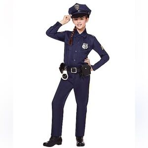 Navy police officer costume for kids. Includes shirt with badge, pants, hat, and belt. Ideal for Halloween and role play. Excellent condition