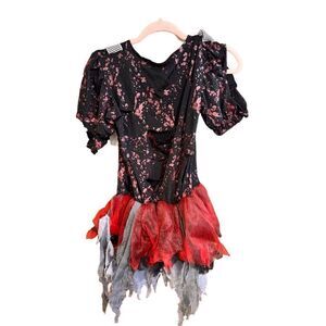 Robe has self-fabric ties at back of neck. jagged cuffs & hemline Tie self-fabric belt at waist as desired