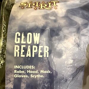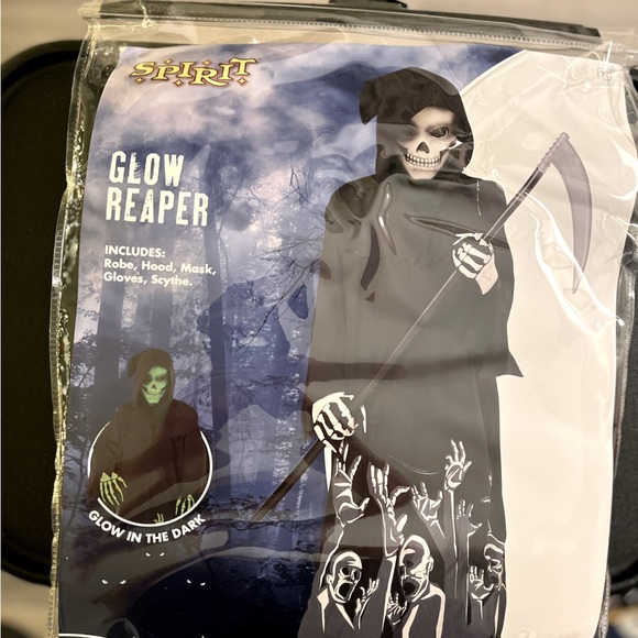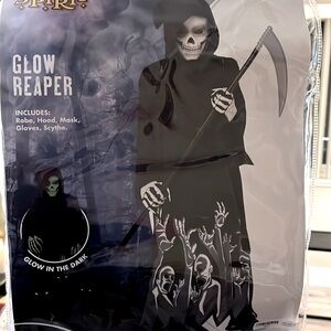 Transform into a spooky specter with the Spirit Glow Reaper Kids Costume. This eerie ensemble includes a robe, hood, mask, gloves, and scythe, all in a haunting black color. Perfect for Halloween or costume parties, this outfit will make your child the center of attention. ♨️NOTE♨️ the SCYTHE is broken only the half top is left.I will include it in the bag it’s an easy fix adding a black stick wrapping with black tape and gluing or taping it to the half top.The rest is in perfect condition. It’s been washed & mask has been sanitized. Mask only worn for less then an hr.
