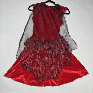 Spirit Girl's Dark Devil Halloween Costume Firey Red Dress & Cape Child Size XL