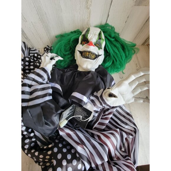 Spirit Halloween AS IS animated scary striped clown hanging home decor prop