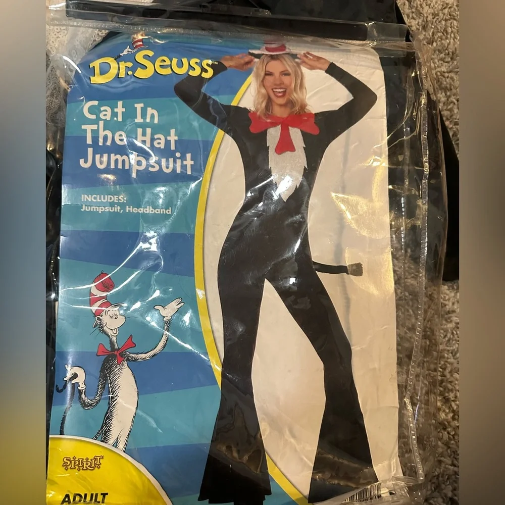 Spirit Halloween Adult Cat in the Hat Bell Bottom Jumpsuit Costume Dr. Seuss SzM