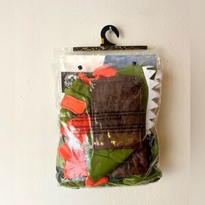 Transform playtime with this vibrant green and orange dinosaur costume. Perfect for imaginative adventures.