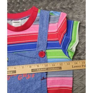 The Spirit Halloween CHUCKY Girl Children's Costume in size Medium includes a colorful dress perfect for Halloween. This costume features an elastic and stretchy design for comfort during wear, making it ideal for young girls who want to dress up in a fun and festive outfit for Halloween celebrations. With its Halloween theme and brand quality from Spirit, this costume is sure to bring joy and excitement to any child's special day! This dress comes from a smoke and pet free home!