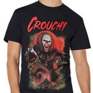 Celebrate your favorite scary clown animatronic with this Crouchy t shirt! This graphic tee features Crouchy's blood-spattered teeth and scary smile in fear-inducing detail. Wear this Crouchy tee as its own costume or during the Halloween season to up the scare factor.