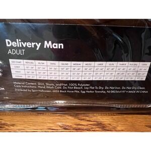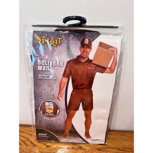 Keywords: Spirit Halloween, Delivery Man Costume, Adult Costume, Medium, Halloween, Costume, Shirt, Shorts, Hat, Funny Costume, Men's Costume, Uniform Costume