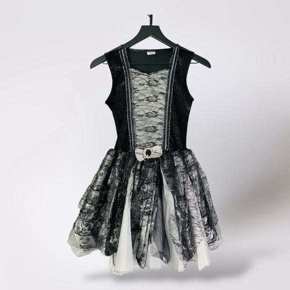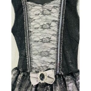 Keywords: Spirit Halloween, Girls dress, Black dress, Silver dress, Lace dress, Costume dress, Party dress, Girls costume, Halloween costume, Size large, Girls clothing, Special occasion, Dress, Formal dress