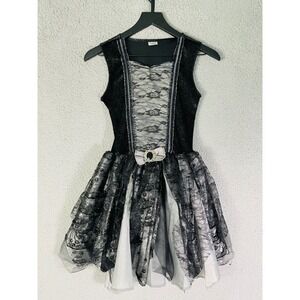 Spirit Halloween Dress Girls Large Black Silver Lace Costume Party