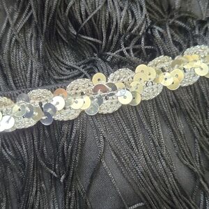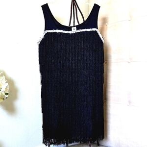 Spirit Halloween Flapper Dress, Black Fringe Mini Dress w Silver Sequin Detail