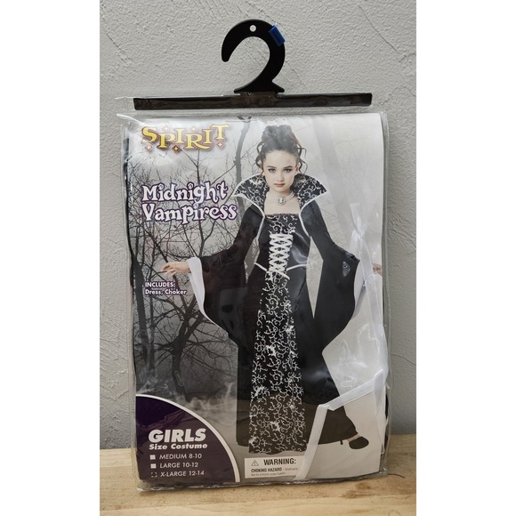 Spirit Halloween Girls Black White Midnight Vampiress Dress Choker Size XL 12-14