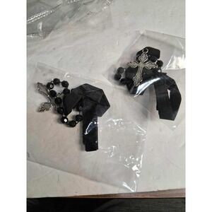 A bewitching Gothic Devil costume from Spirit Halloween. This haunting ensemble includes a black velvet dress with decorative red ribbon accents, along with coordinating wings and a headband for a complete devilish look. This unique garment is detailed with lace trim on the sleeves and hem adding an extra touch of gothic charm. Ideal for Halloween parties, theatrical performances, or imaginative play.