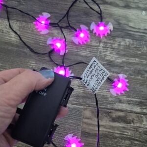 Illuminate your space with these vibrant purple LED bats string lights. Perfect for adding a touch of color to any room or event.